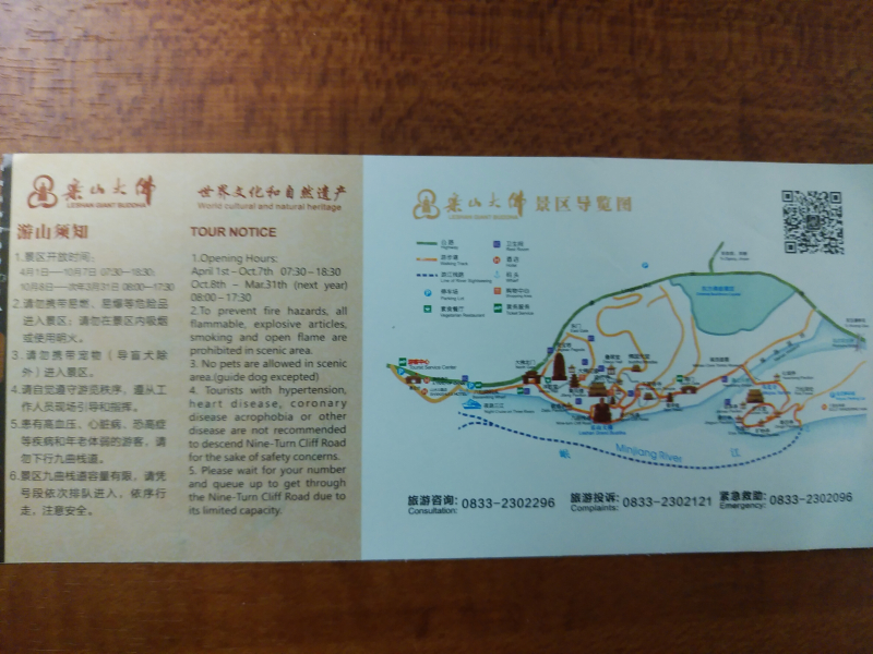成都旅遊集散中心 (2F)チケット購入 7:11(実際7:40発) -> 1時間50分 ー>乐山肖坝旅游车站