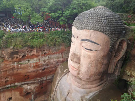乘坐高铁或旅游大巴到达乐山市中区,高铁站出站可直接乘坐K1和3路公交车,肖坝汽车站出站可乘坐13路公交车直接到达景区。
