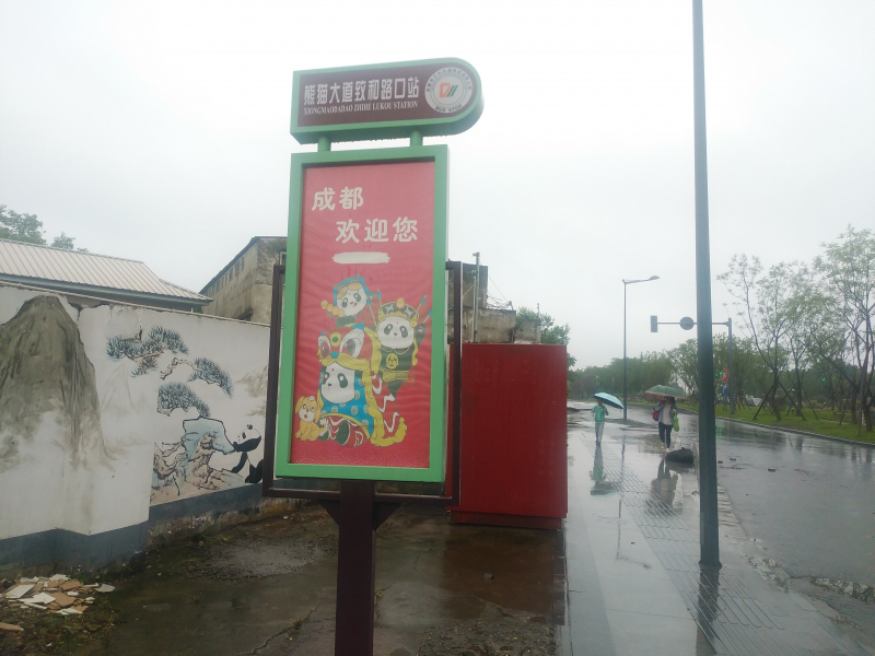 旅游观光车运行线路:(1)售票处→(14)(15)天鹅湖→(7)大熊猫魅力剧场→(21)小熊猫活动场→(10)大熊猫太阳产房→(20)大熊猫2号别墅→(19)大熊猫月亮产房→(18)大熊猫1号别墅(终点站,此处游客只下车,不上车)