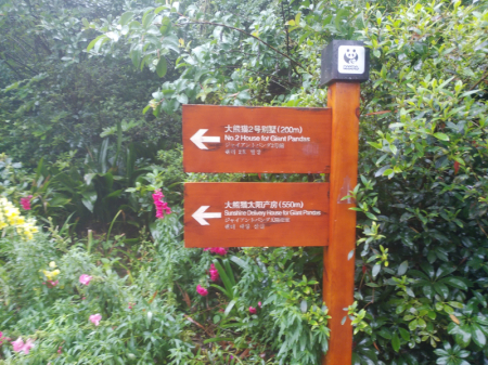 (1)正門→(14)(15)天鵝湖(ローズガーデン)→(12)成年ジャイアントパンダのコテージ→(11)幼年ジャイアントパンダのコテージ→(10)ジャイアントパンダの太陽の産室→(20)ジャイアントパンダの2号コテージ→(19)ジャイアントパンダの月の産室→(18)ジャイアントパンダの1号コテージ→(17)ジャイアントパンダキッチン→(16)ジャイアントパンダ病院→(5)ジャイアントパンダ秘密探求館→(3)ジャイアントパンダ博物館→(1)正門